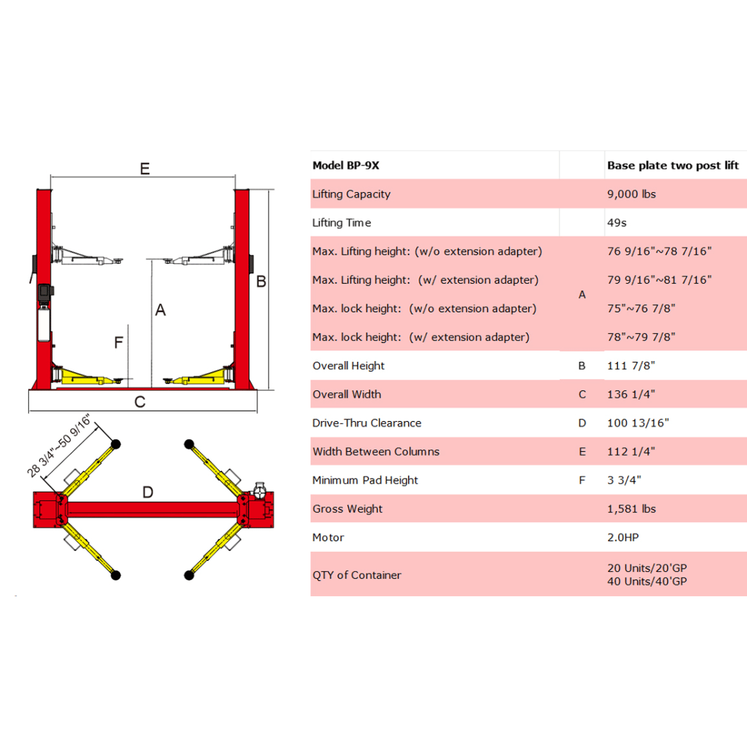 AMGO BP-9X Base Plate 2-Post Lift – 9,000 lb Capacity