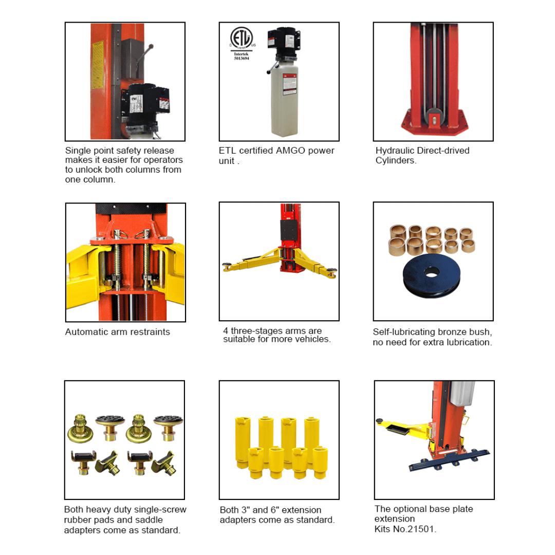 - Motor: 2.0 HP, 220V single-phase – consistent, professional-grade lift power