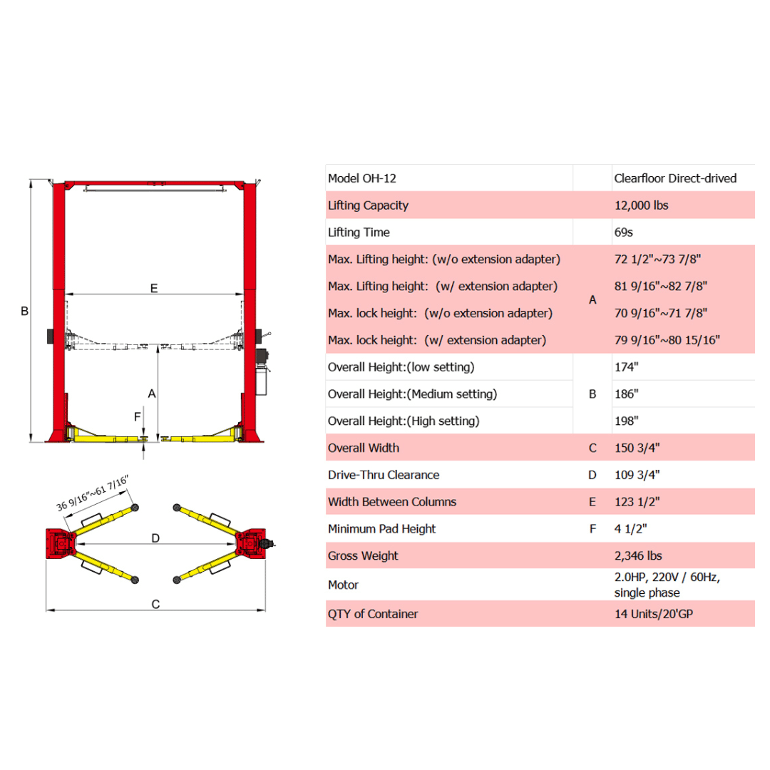 - 12,000 lb lifting capacity – handles wide-body trucks, vans, SUVs, and heavy-duty vehicles