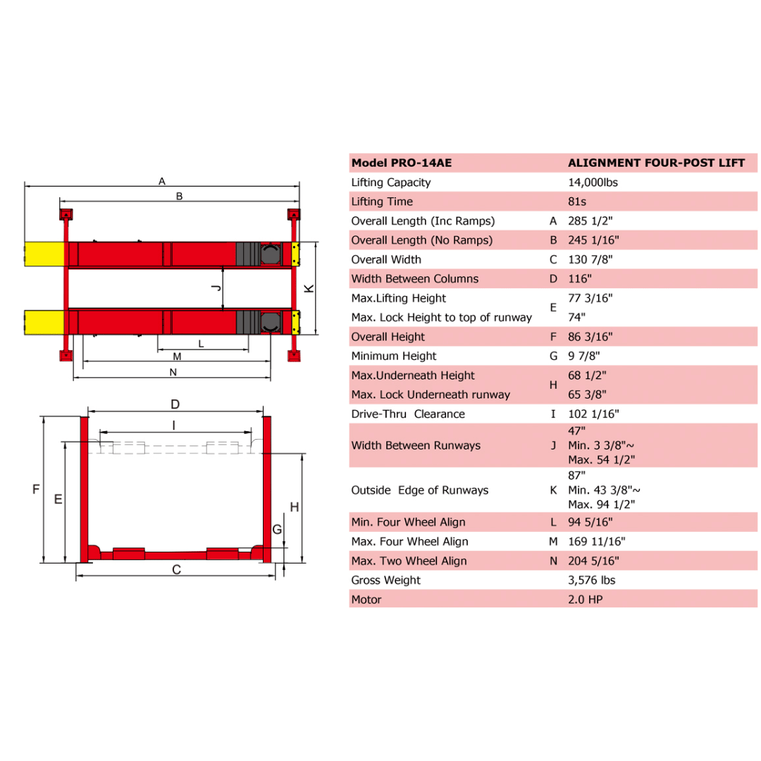 AMGO PRO-14AE Extended Alignment 4-Post Lift – 14,000 lb Capacity