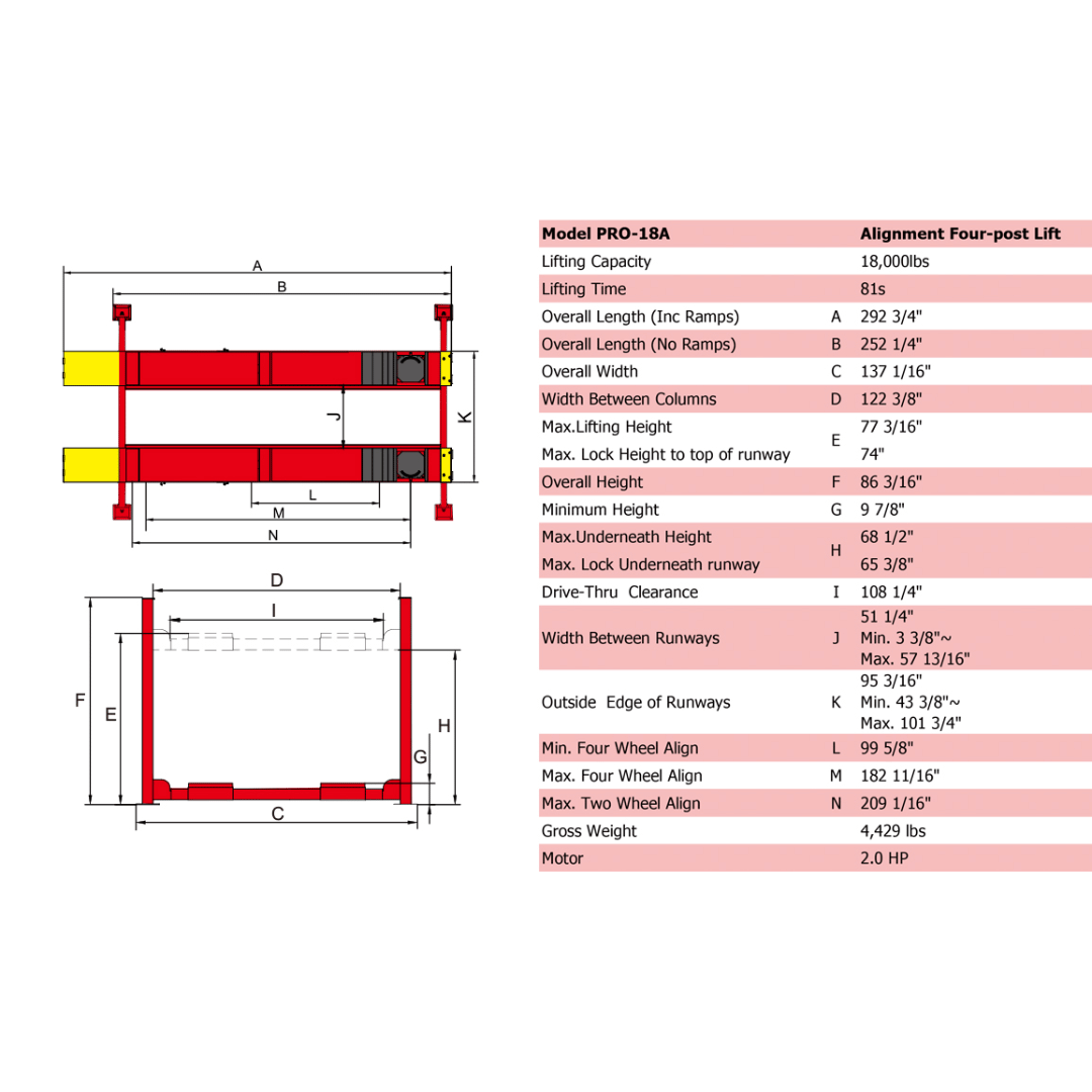 AMGO PRO-18A Heavy-Duty Alignment 4-Post Lift – 18,000 lb Capacity