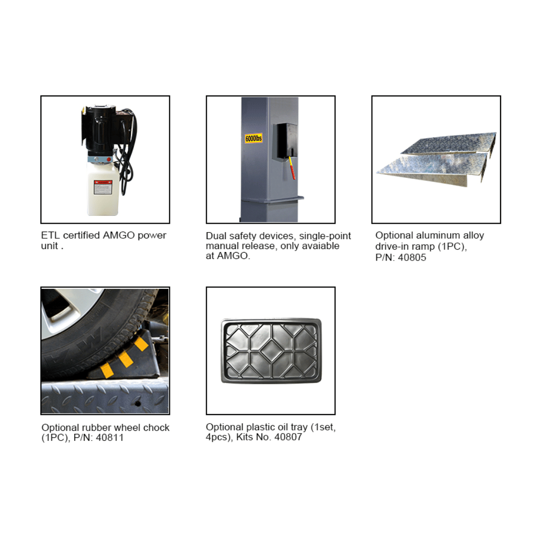 The AMGO SPL-6 Single Post Parking Lift offers a compact, high-strength solution for maximizing vehicle storage in garages, dealerships, and commercial properties. With a 6,000 lb lifting capacity, this newly enhanced model features reinforced structural design, dual safety mechanisms, and a space-saving footprint, making it perfect for both personal and professional parking needs.