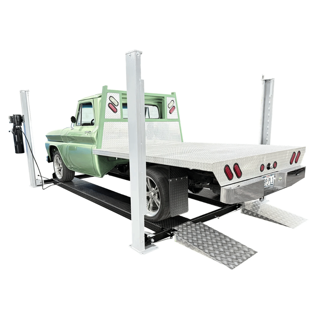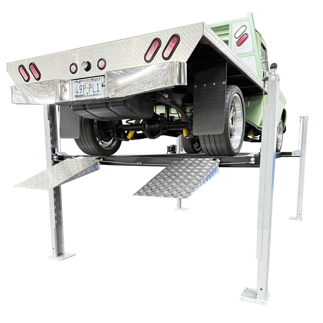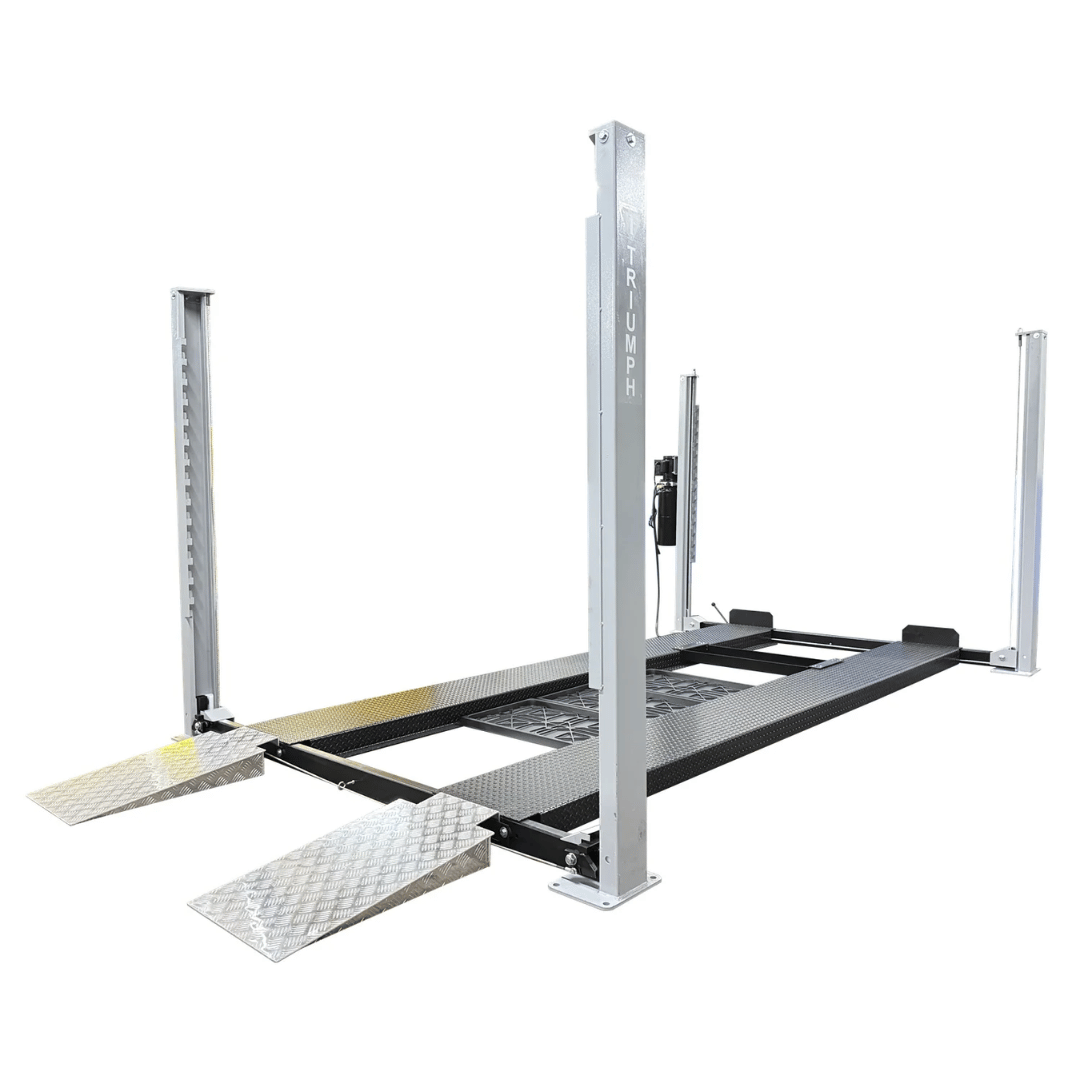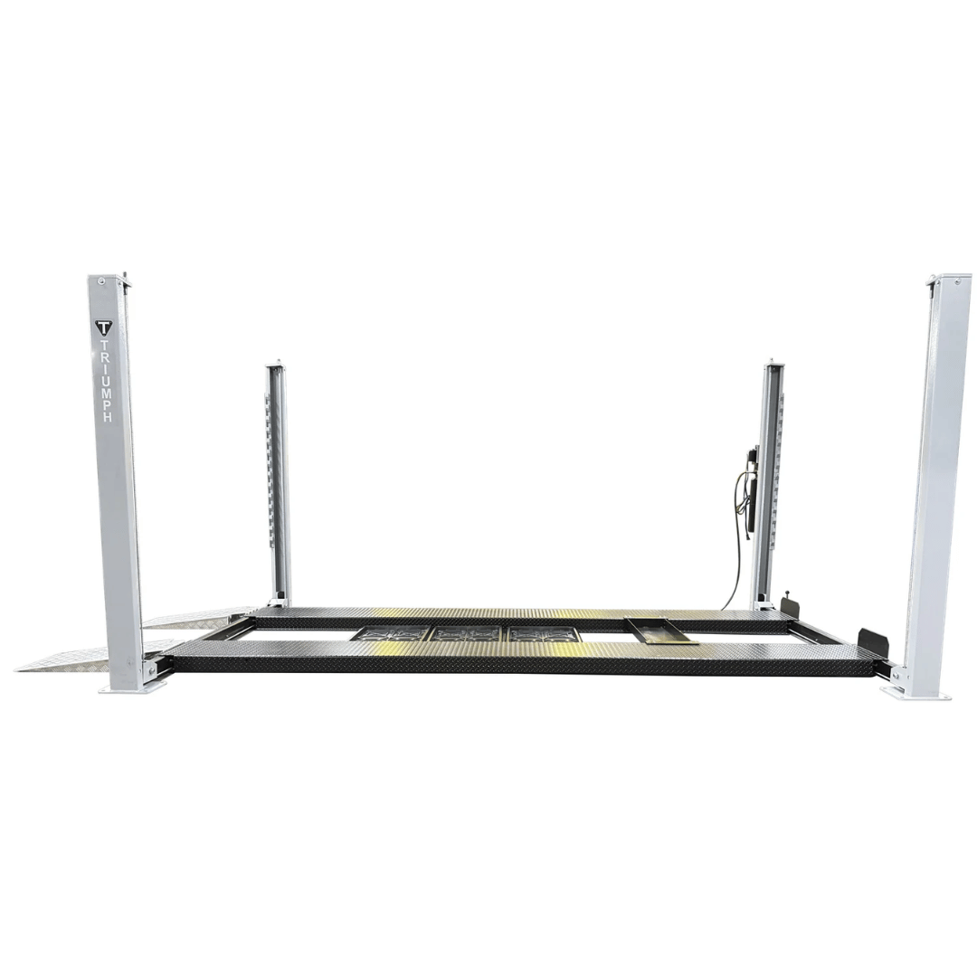 The Triumph USA8000 is a premium four-post car lift ideal for both service and storage applications. Built with reliability and convenience in mind, this lift includes a caster kit, jack tray, and three drip trays—everything you need to keep your workspace clean, mobile, and functional.